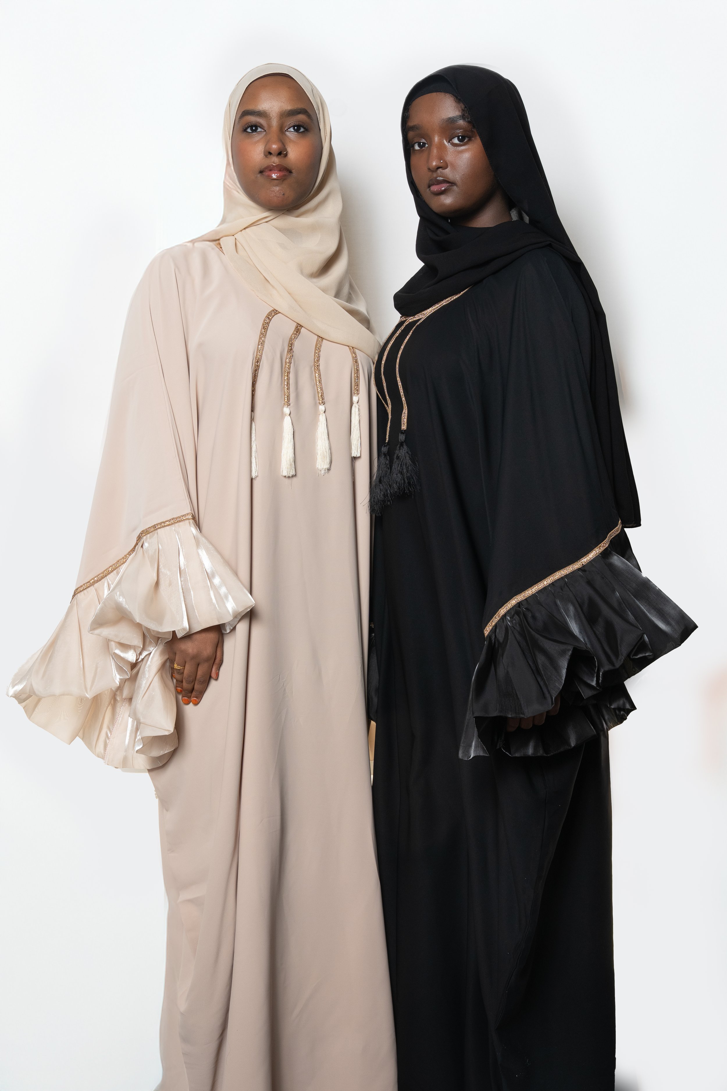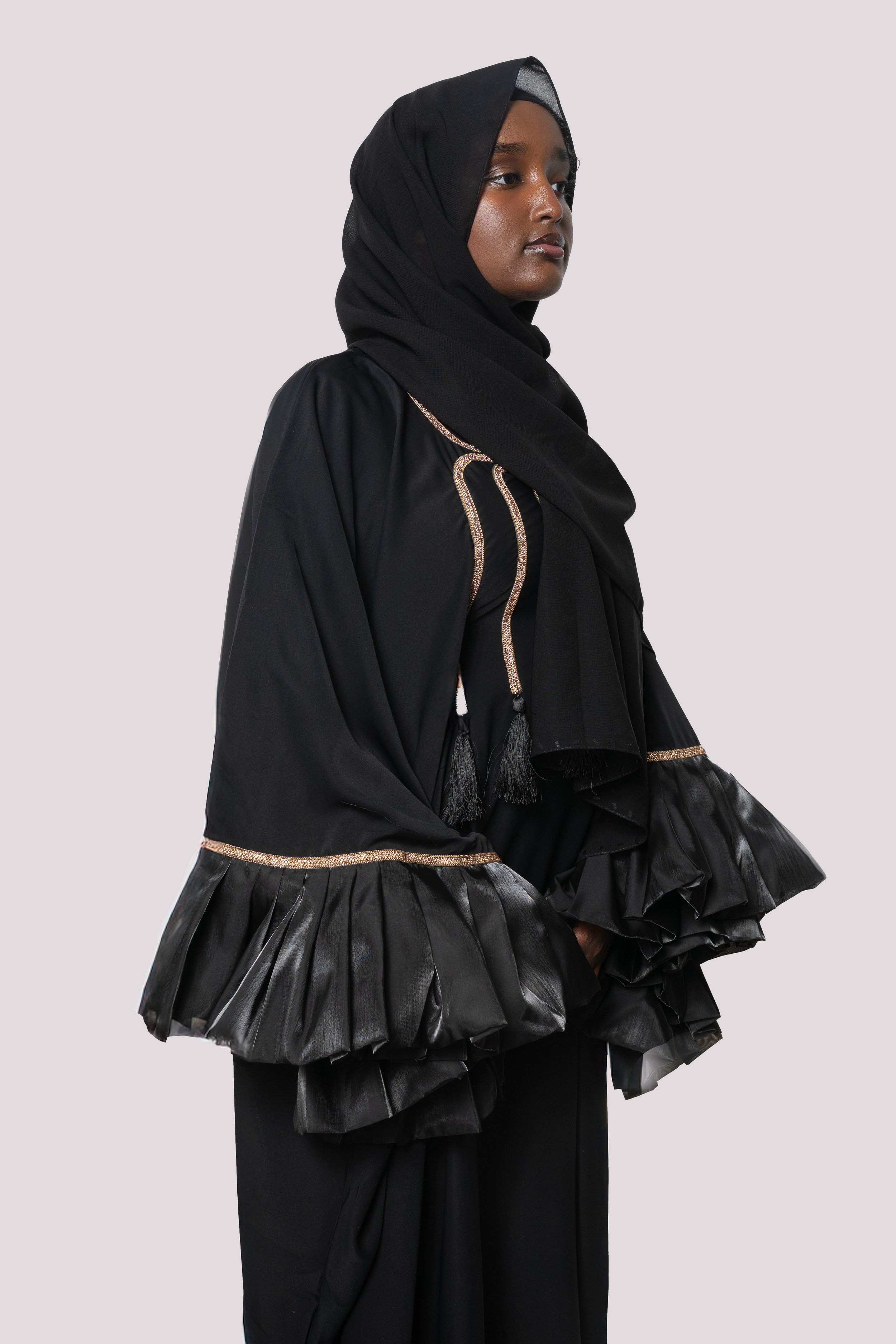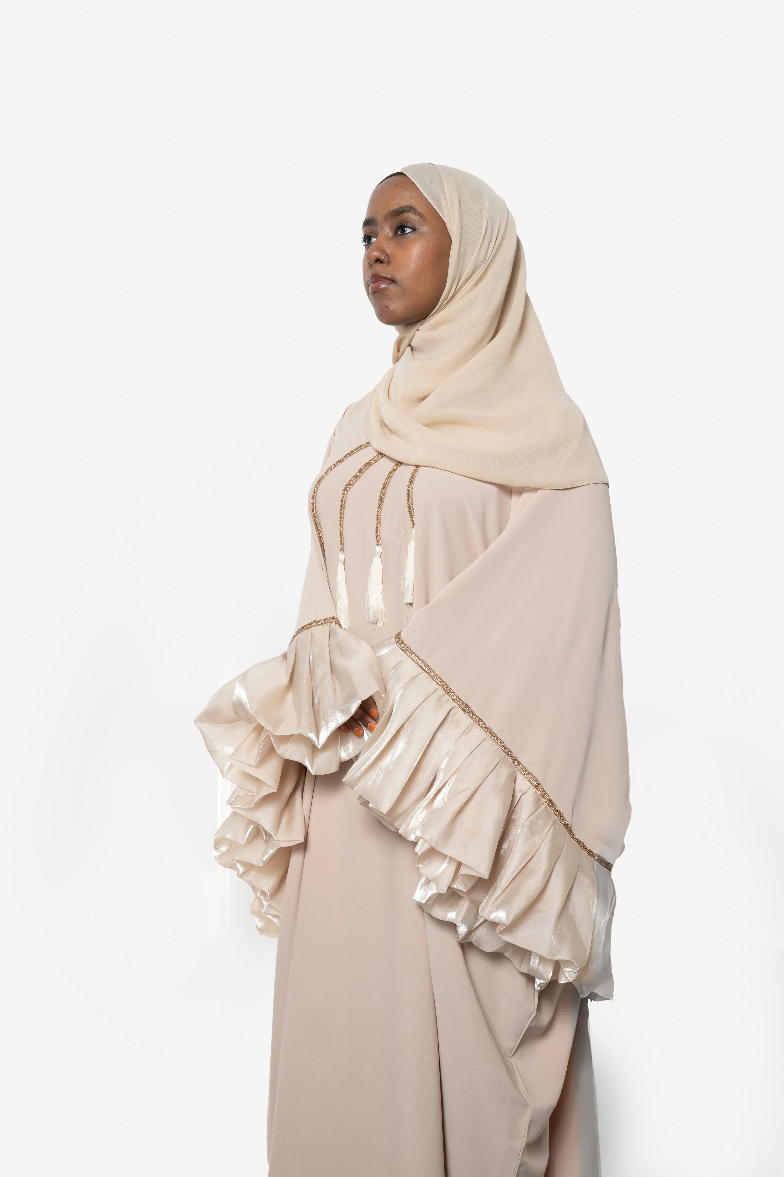 Women’s › Hayā Ruffle Abaya Image 1 of 3 Image 2 of 3 Image 3 of 3 Hayā Ruffle Abaya $100.00 Hijab Included. Size: Select Size 52 54 56 58 60 62 Color: Select Color Beige Black Quantity: Add To Cart Added! Hijab Included.